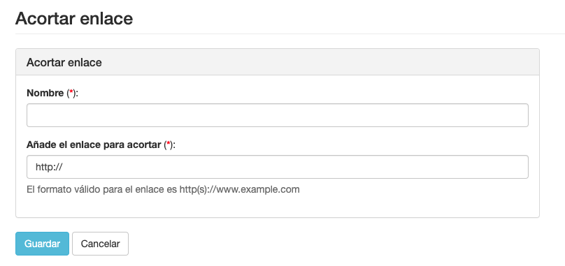 Escoge un nombre para identificarlo y añade el enlace original que quieres acortar.