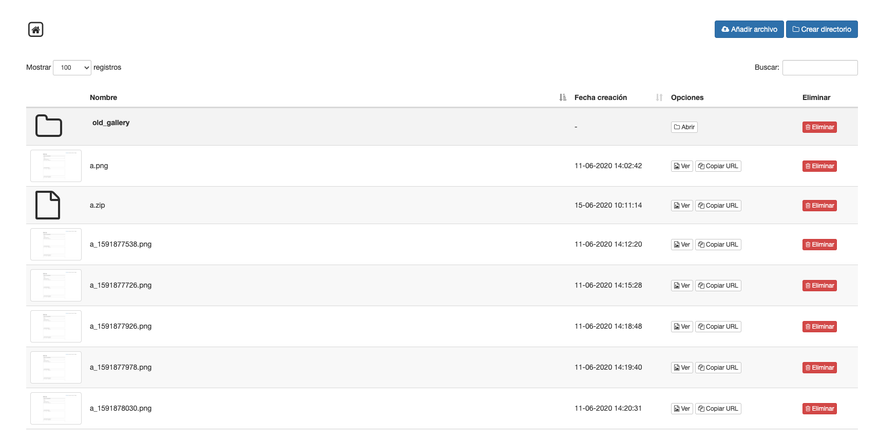 Puedes añadir archivos a la galería pulsando el botón 'Añadir archivo' o arrastrando los archivos hacia la galería.